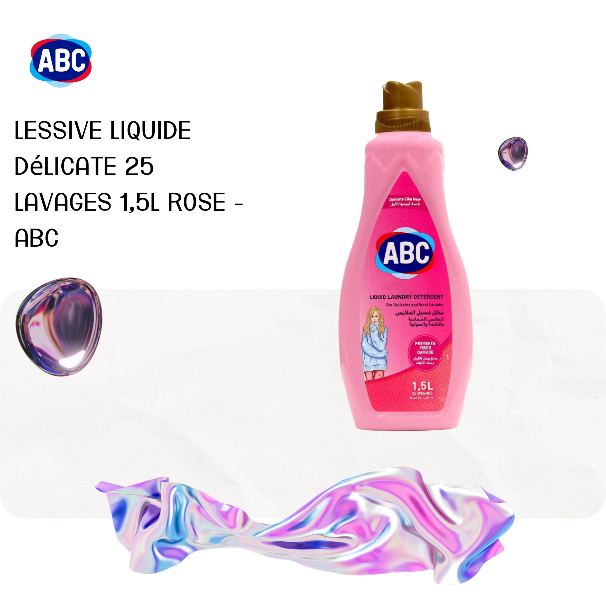 Lessive liquide Délicate 25 lavages 1,5L Rose - ABC